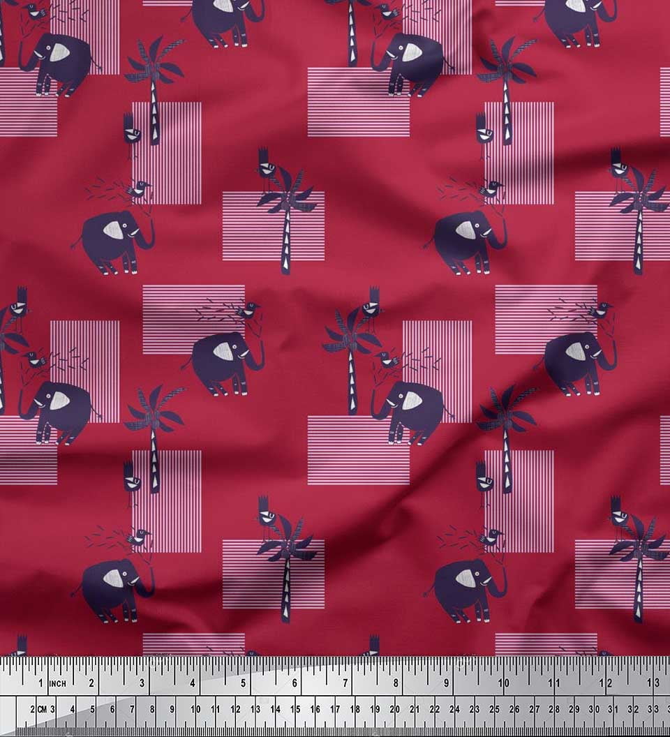 Soimoi Satin Silk Fabric Bird Coconut Tree Elephant Kids Printed Craft Fabric By The Yard 42 Inch Wide Walmart Com